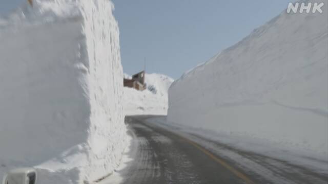 ★「立山黒部アルペンルート」全線開通も観光客激減!。富山県と長野県を結ぶ北アルプスの山岳観光ルート「立山黒部アルペンルート」が15日、全線で開通しました。新型コロナウイルスの感染拡大を防ぐため、観光名所の「雪の大谷」も、バスから降りて見学できなくなっていて、観光客は激減しています。「立山黒部アルペンルート」は富山県立山町と長野県大町市をロープウエーやケーブルカーなどで結ぶ山岳観光ルートで、15日、全線で開通しました。ことしはケーブルカーやバスの車内などの消毒を徹底し、車内や客が並ぶ列の間隔を広く取っているほか、いつもは歩いて楽しむことができる巨大な雪の壁「雪の大谷」も、バスから降りずに車窓から見学する形にしています。全線開通初日の15日、例年は多くの観光客でにぎわう標高2450メートルの室堂ターミナルでは、観光客の姿はまばらで午前10時ごろに到着したバスからは、10人ほどが降り立ちました。新潟県から訪れたという40代の会社員の男性は「去年も来ましたが、ことしは外国人の姿が全く見えないので驚きました。感染予防でマスクを持参して来ました。手洗いなど対策を心がけたい」と話していました。アルペンルートを運営する「立山黒部貫光」によりますと、ことしは予約のキャンセルが相次ぎ、今月は団体の予約が1件も入っていないということで「観光客の減少はやむを得ないと考えている。国や県などと緊密に連携して、訪れる人の安全に配慮しながら、運営していきたい」とコメントしています。外からの観光客も激減 ホテルは大打撃立山黒部アルペンルートを訪れる観光客を多く受け入れてきた、富山駅周辺のホテルも打撃を受けています。富山駅近くの「ホテルグランテラス富山」は、部屋から見える立山連峰の雄大な眺めが人気で、例年この時期は、台湾や東南アジアなどから訪れた多くの観光客が、このホテルを利用します。ホテルによりますと去年のこの時期は、宿泊客のおよそ6割が海外の観光客でしたが、ことしは新型コロナウイルスの感染拡大の影響で、2月から先月にかけて予約のキャンセルが相次ぎ、今月と来月は外国人観光客の予約は1件も入っていないということです。客室全体の稼働率も、去年は平均で7割ほどでしたが、ことしに入ってからは3割ほどにまで落ち込んでいて、このままの状況が続けば、宿泊による売り上げも去年の3割ほどになる見込みだということです。ホテルの湯上均副総支配人は「今は、ふだん掃除が行き届かない所の清掃や、従業員の勉強会などに力を入れている。感染拡大の防止のため、利用者の減少はしかたがないことだと受け止めているが、早く終息することを願うしかない」と話していました。